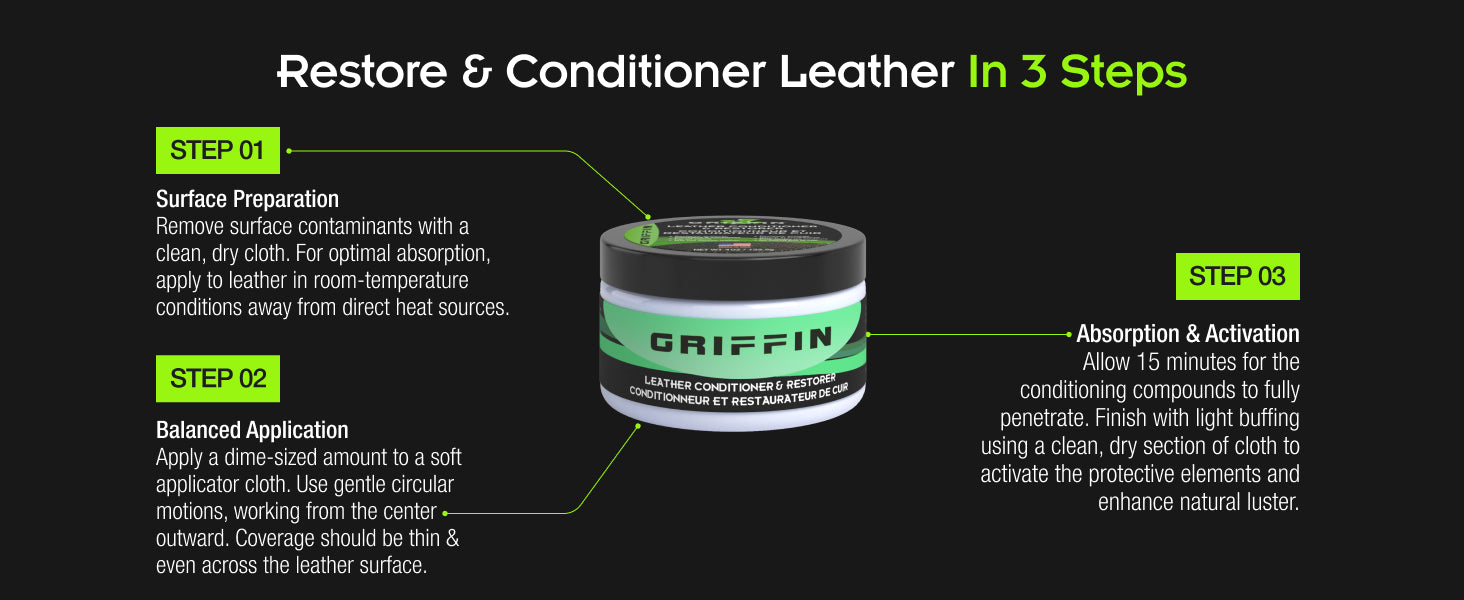 Griffin Leather Conditioner and Restorer is expertly formulated to deeply penetrate leather pores, providing essential nourishment and protection. This advanced treatment rejuvenates worn or aged leather, restoring its natural beauty and suppleness. Ideal for maintaining the longevity and appearance of your leather goods, it leaves surfaces looking refreshed and feeling soft without compromising their integrity.
