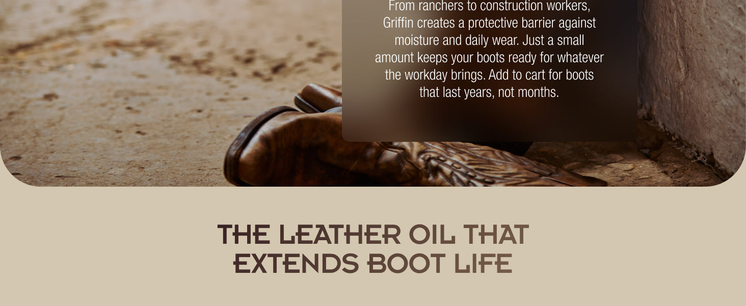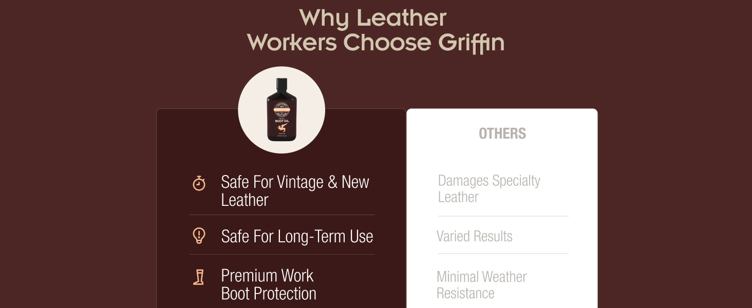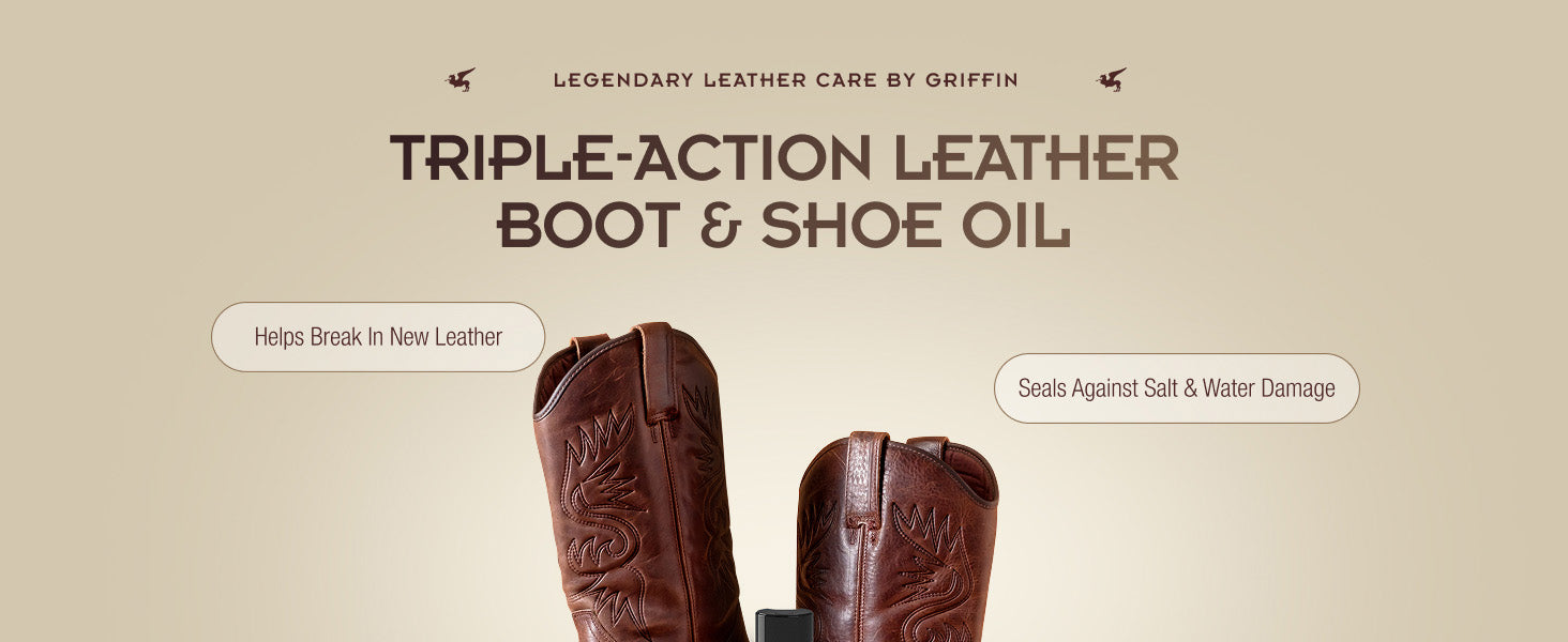 Griffin Shoe Care® premium boot oil protects your footwear, increasing the longevity of your products. It adds a water resistant barrier preserving and protecting your leather from rain, snow, salt, mold and mildew.