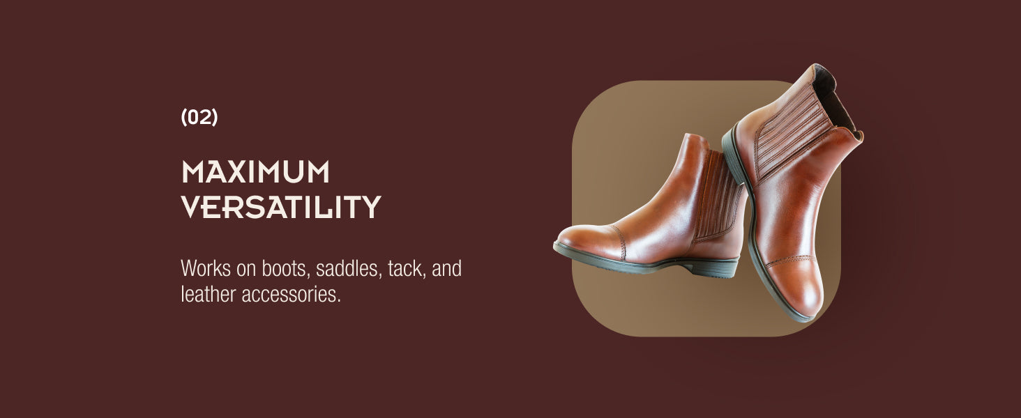 Designed for boots, able to improve a variety of leather products. This can include wallets, belts and other shoes!