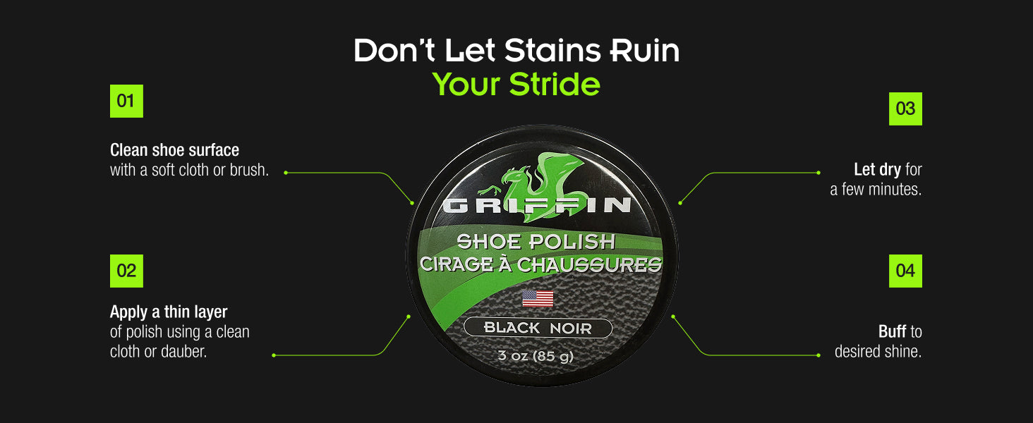 Griffin Shoe Care® Shoe Polish provides rich color and high shine for all of your footwear needs. Shine and polish your shoes with our deep pigmentation and excellent quality formula.