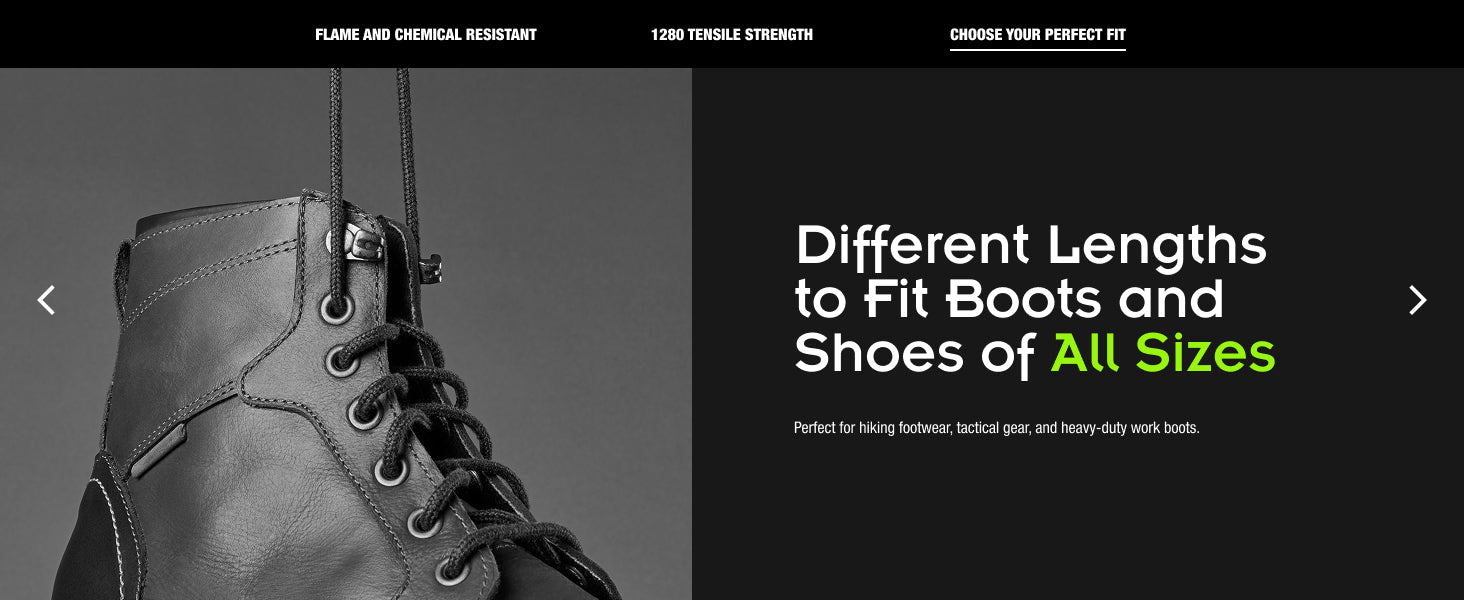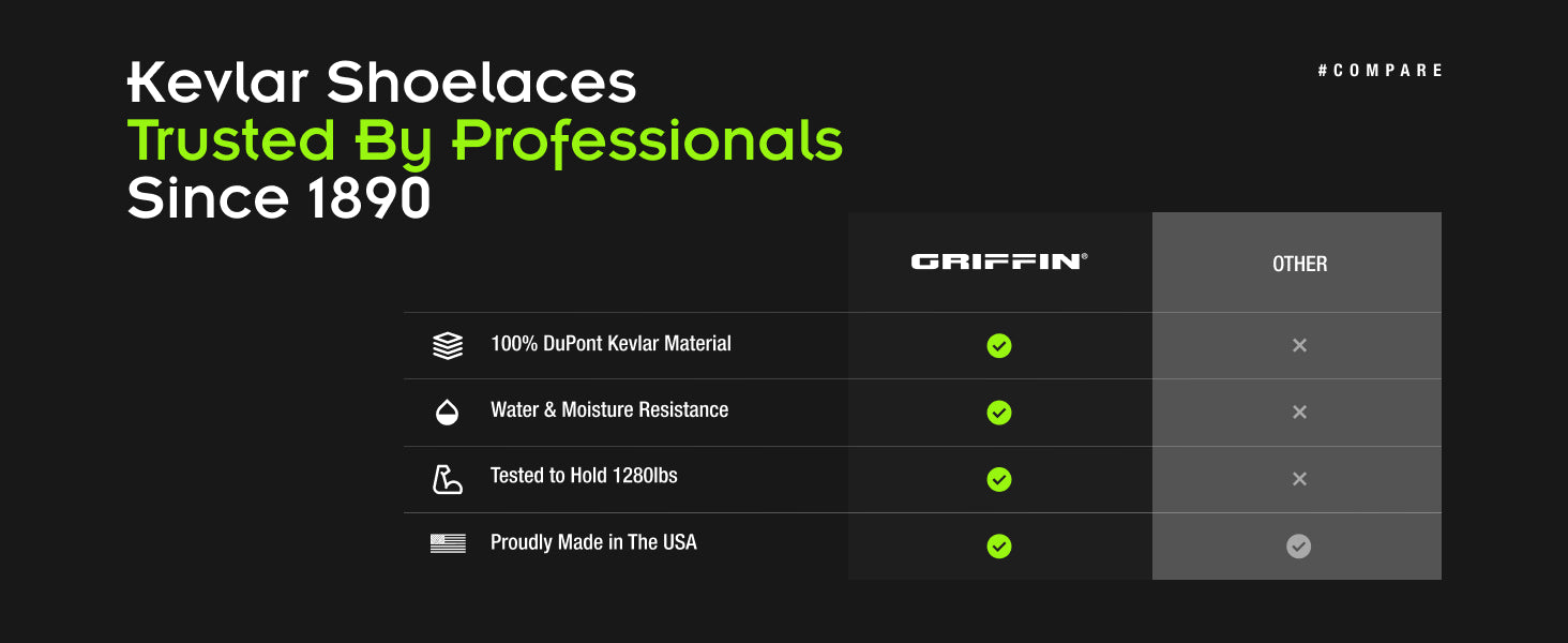 Our 100% DuPont Kevlar™ laces are exquisite pieces of craftsmanship, made from the finest flame-resistant and chemical retardant material. Highly durable and boasting a tensile strength of 1280 pounds, these laces will last you a lifetime - perfect for lacing up your most exclusive boots.
